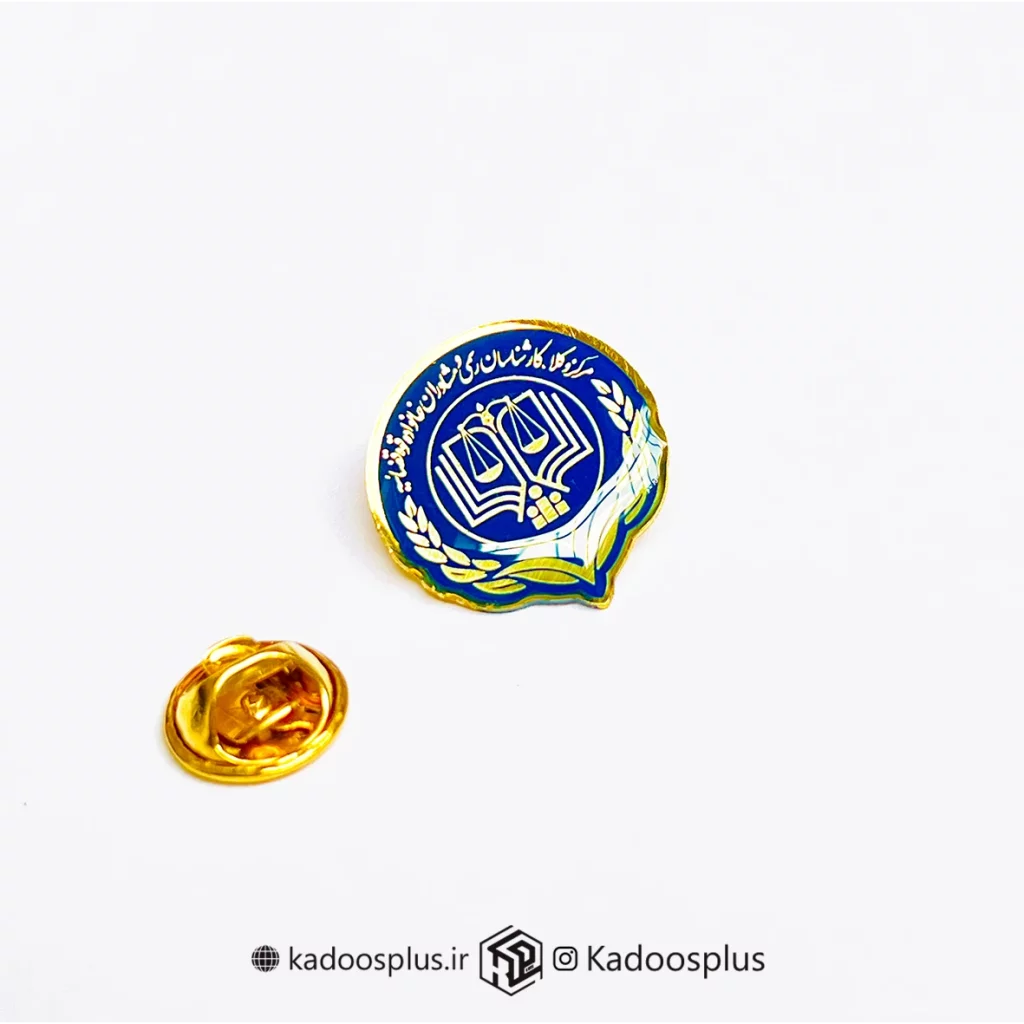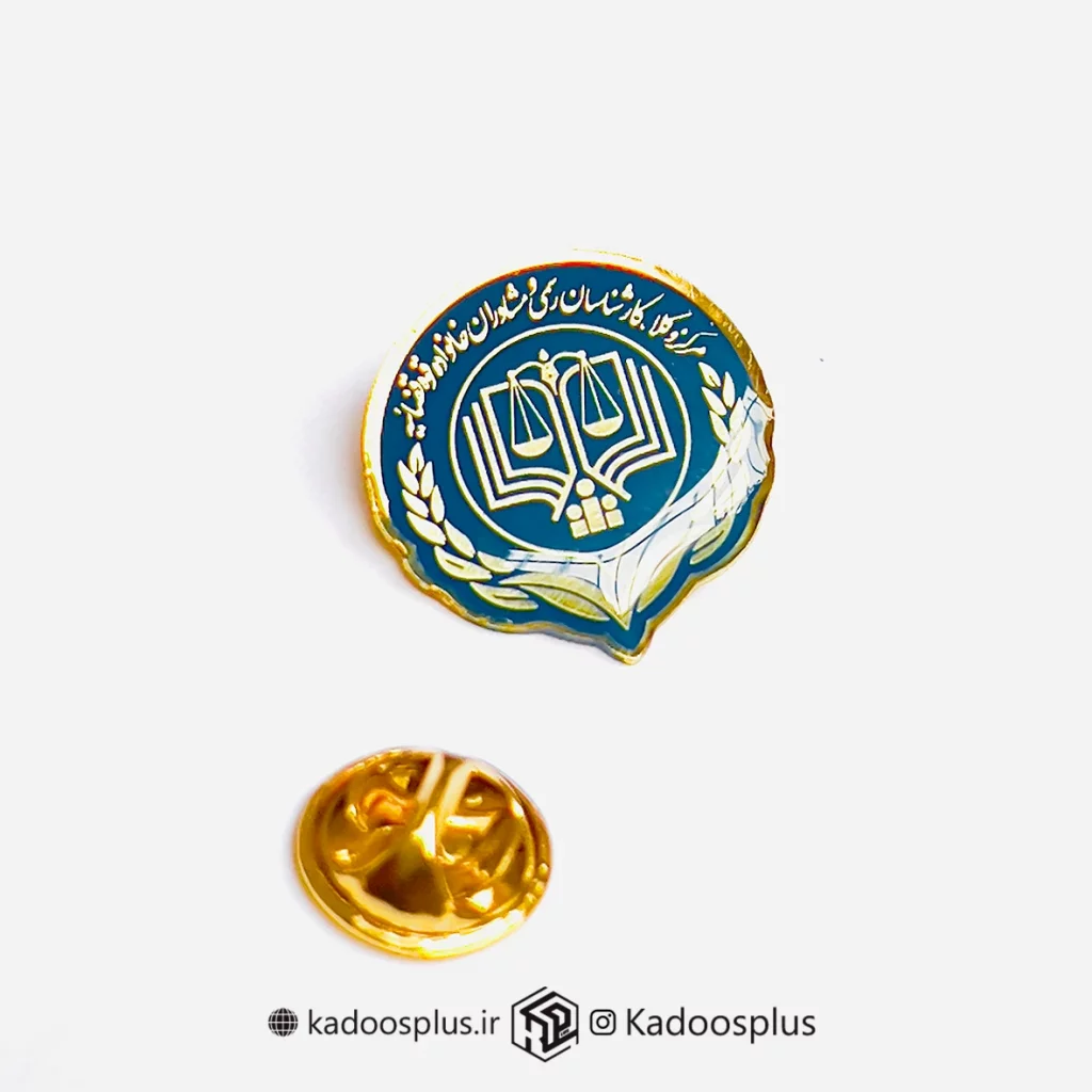 بج سینه دایره ای مرکز وکلا سرمهای با حکاکی طلایی و روکش پلی استر