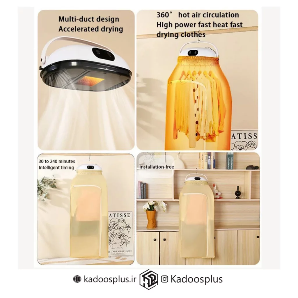قابلیت ها | خشک کردن 9 تا 10 لباس همزمان - قابل استفاده به عنوان حوله خشک کن و دست خشک کن داری پارچه روکش برای کارایی بهتر |