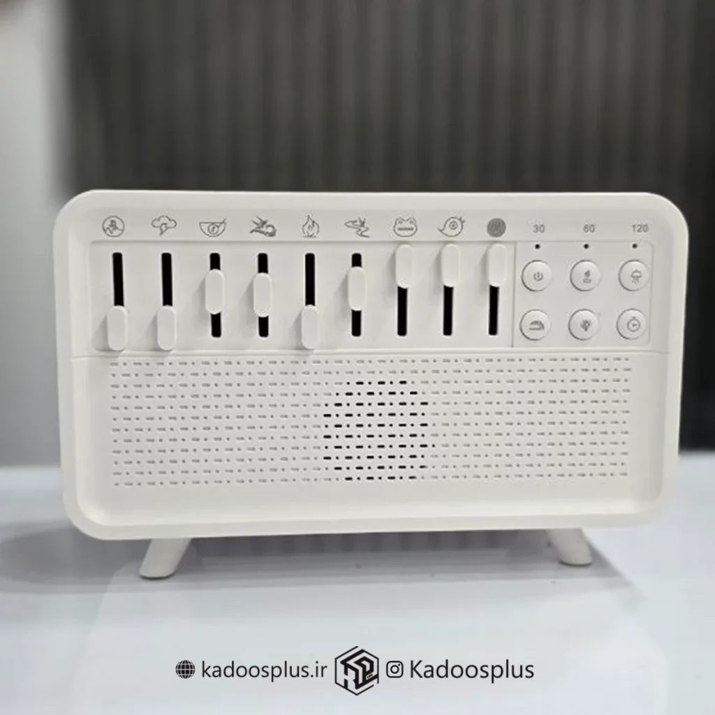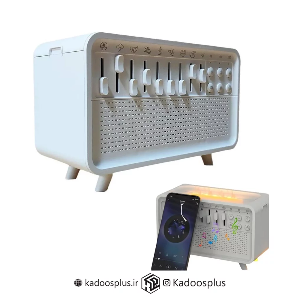 این مدل دارای ۹ صدای مختلف از جمله صدای پرندگان، باران و جریان آب است که با دکمه تنظیم صدا قابل کنترل است. اتصال بلوتوث نیز امکان پخش موسیقی دلخواه را فراهم کرده و چراغ خواب تعبیهشده، با نور نرم و بدون خیرگی، برای استفاده شبانه بسیار مناسب است.