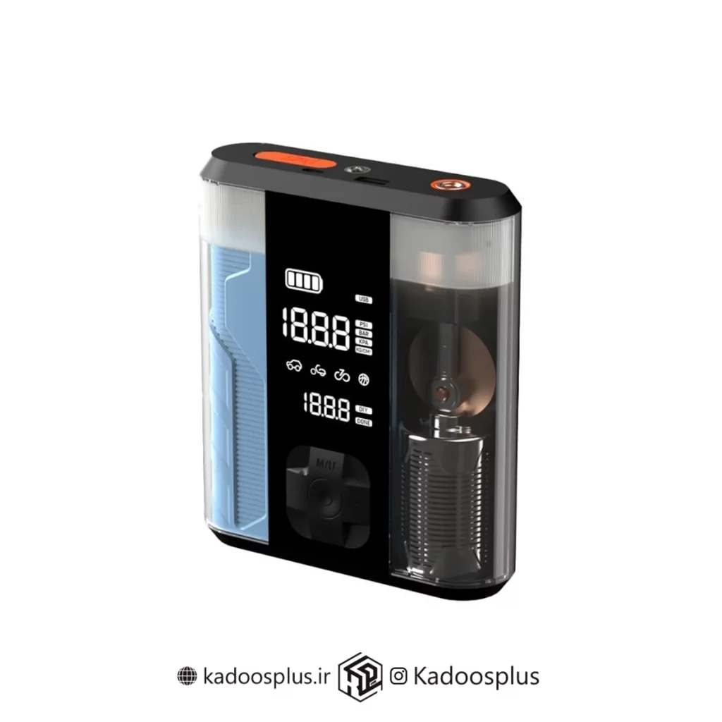 این دستگاه دارای یک صفحه نمایش دیجیتال است که امکان مشاهده و تنظیم فشار پمپ باد و دیگر پارامترها را فراهم میکند. همچنین میتوانید درصد شارژ تقریبی دستگاه را از طریق این صفحه نمایش مشاهده کنید.این ویژگی کمک می کند به راحتی اطلاعات محصول را مشاهده کرده و از آن بهره ببرید.