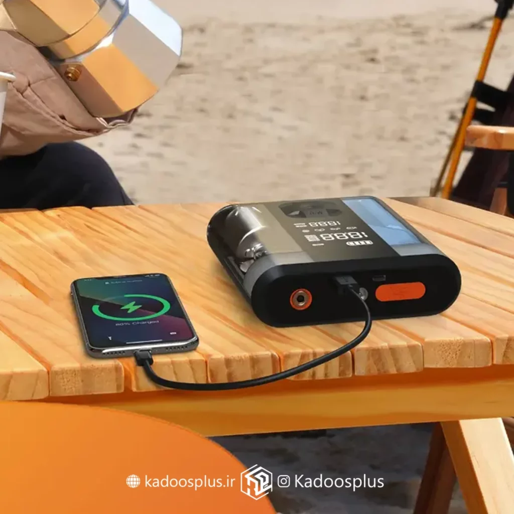 اولین ویژگی برجسته این دستگاه، جامپ استارتر آن است که امکان شارژ باتری ماشین را فراهم میکند. این ویژگی برای افرادی که به سفرهای طولانی میروند یا کارشان با خودرو است، بسیار کاربردی است و دیگر نیازی به نگرانی در مورد باتری خودرو نخواهند داشت. جامپ استارتر این دستگاه میتواند خودروهایی با حجم موتور تا ۵ لیتر و ۳ لیتری را راهاندازی کند که ویژگی عالی برای جامپ استارت ها محسوب می شود.
